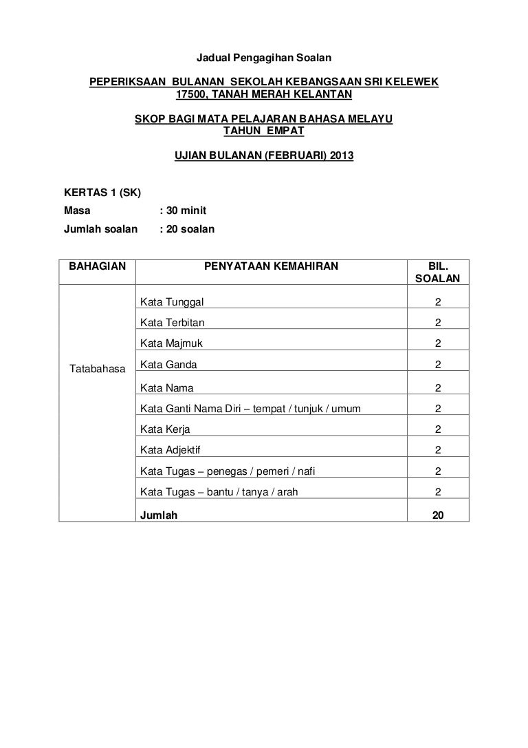 Maksud dan Contoh Ayat K. Tahap pencapaian individu berpandukan Jadual Spesifikasi Ujian JSU sama ada dalam bentuk formal ataupun tak formal mengikut 6 aras. Format salah betul 2.